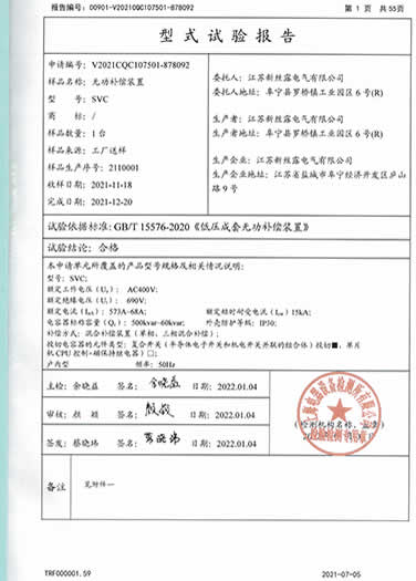 SVC无功补偿装置试验报告