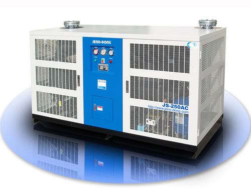 主要性能: 1、严格按照ISO9001、GB150标准、QS、压力容器检验规范进行生产,确保产品安全、可靠运行。 2、操作简单,维护方便。 3、制冷零部件、控制元件均采用国际优质品牌,提高使用寿命。 4、加大换热器传热面积,传热效率更佳,保证了机器露点的稳定性。 5、特殊设计的二次冷凝器,完美利用出口冷源,并节省能源,避免管路结露带来的损失。 6、高效率的气水分离装置配合优良的自动排水阀,持续稳定的将冷凝水排出机外。 7、安全可靠的保护装置(机器配有高压开关、低压开关、防冻开关、安全阀、过载电驿…等高精度保护装置) 8、JENN-DONG的E-CTRL系列微电脑控制面板(选配件),是一个基于高级微处理器的实时操作系统,它通过简洁明了的用户界面进行全面的控制和监视。用户可在第一时间识别出干燥机运行过程中的任何状况,以保证用于敏感的应用场合。同时E-CTRL还配有远程控制端口、联控端口,以满足用户的特殊需要。 9、特殊产品可接受订制(处理量,特殊规格、材质、温度、压力、控制方式等)。 10、运行成本低,易耗品少,避免易耗品的费用,降低了运行成本。 11、公司引进先进的铜管加工设备、全自动高速鳍片冲床、功能齐全的数控加工设备,及先进的加工工艺,组成国内唯一自主加工蒸发器及热交换器、冷凝器的冷干机生产厂家,同时规范了多级的产品检验制度,制程丝毫不苟,确保产品的可靠性。